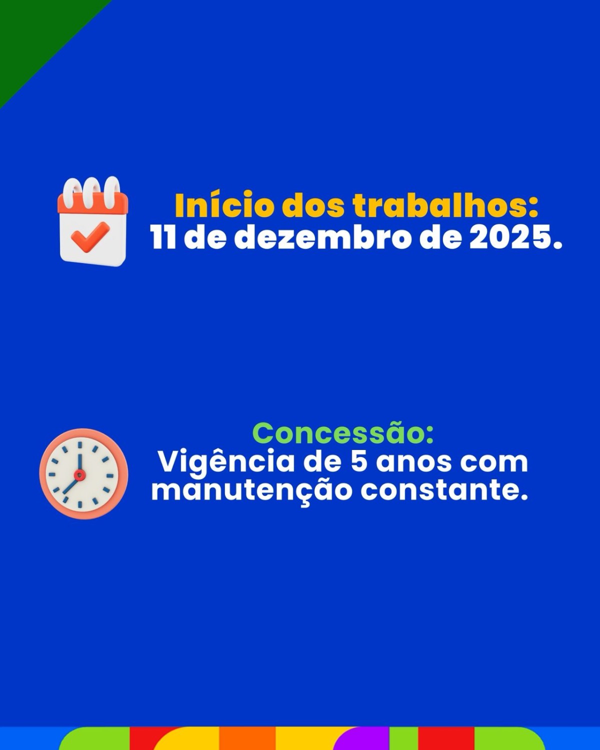 O projeto é realizado por meio de concessão pública, sem custos para o município, resultado da Concorrência nº 02/2025, vencida pela empresa Clik Designer. A instalação começou no dia 11 de dezembro de 2025 e a concessão terá duração de cinco anos.